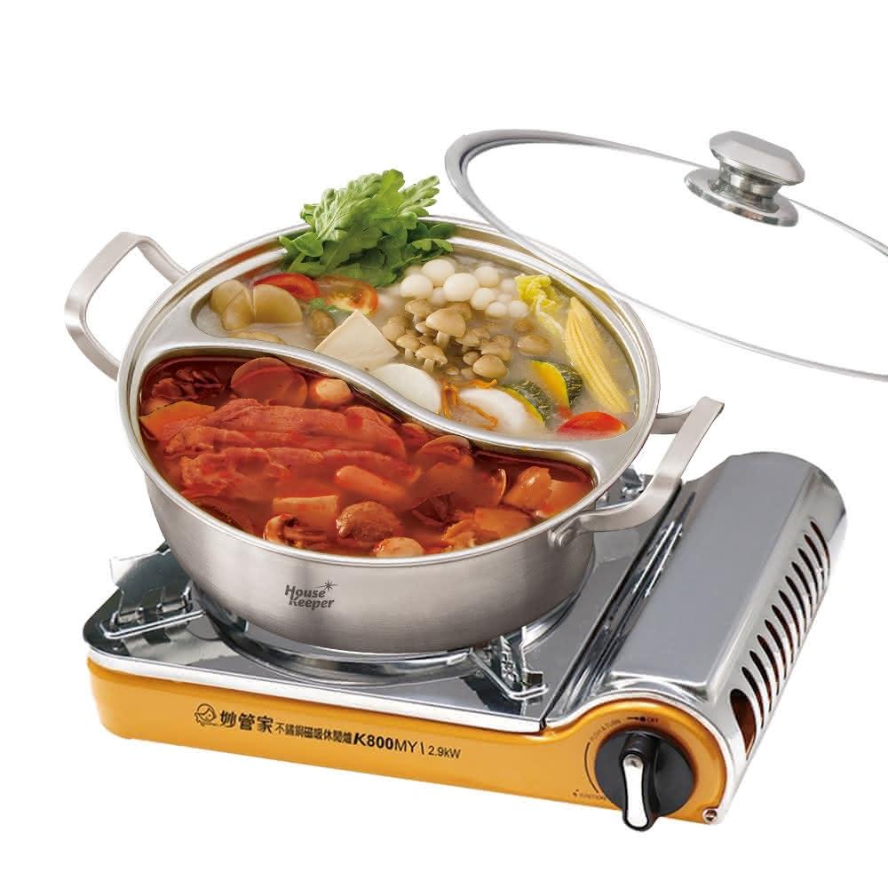 妙管家不鏽鋼磁吸卡式爐 K800MY+304不鏽鋼一體成型鴛鴦鍋28cm