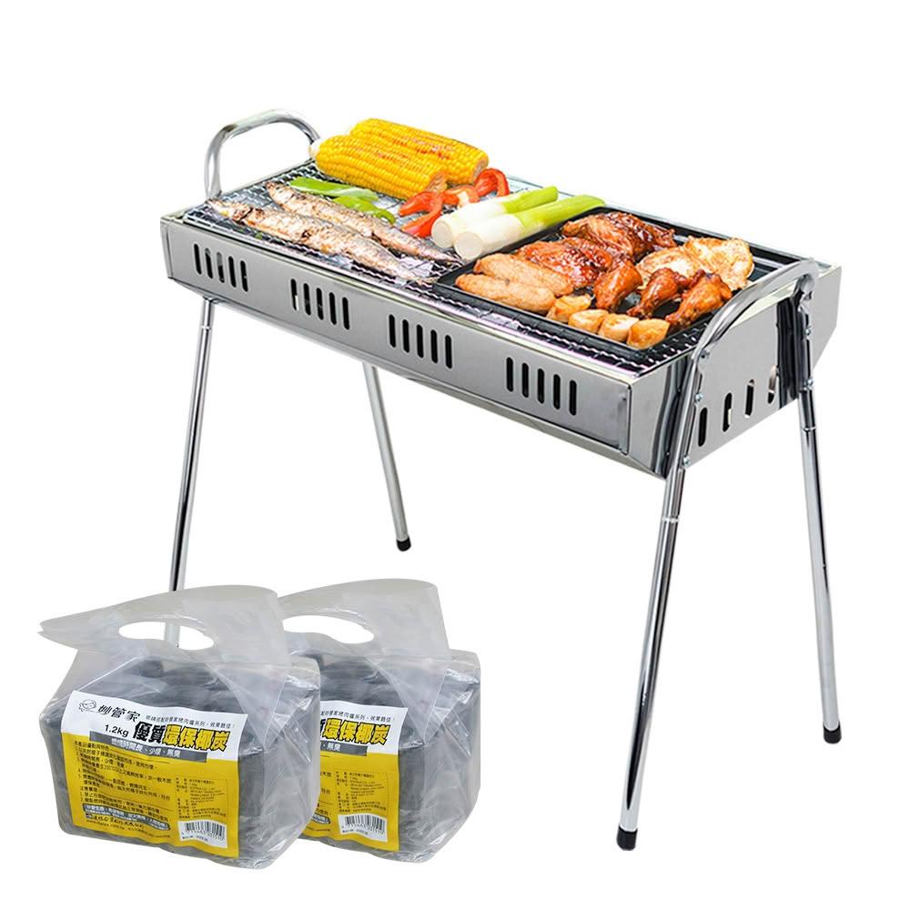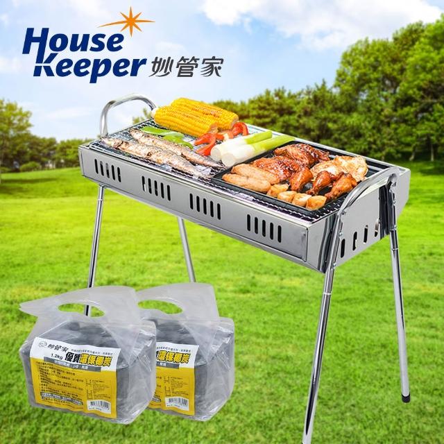 妙管家特級不鏽鋼高腳烤肉架+1.2KG 環保椰炭2入 中秋 BBQ 台灣製烤肉爐 燒烤