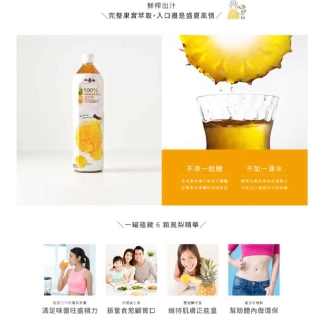 旺萊山雙11優惠 6瓶-100%百分百純鳳梨汁1450ml鳯梨原汁 清甜濃郁鳳梨香