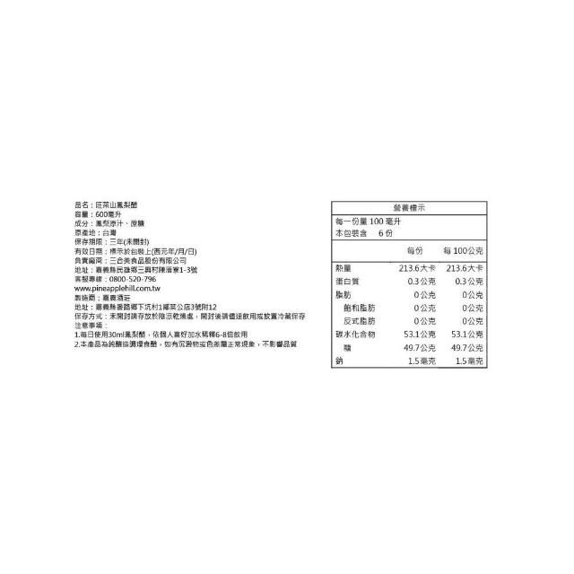 旺萊山金牌鳳梨醋600ml*3入/組 (贈金牌鳳梨醋600ml*2)共5瓶