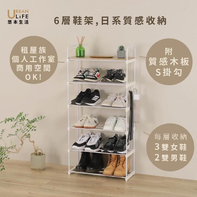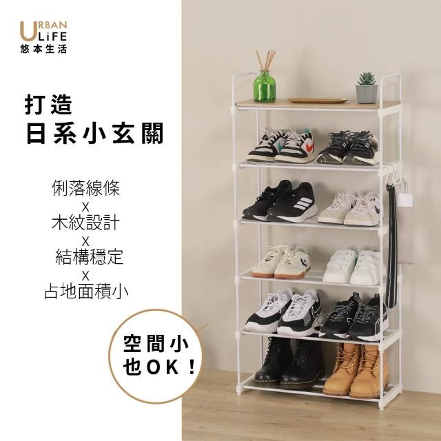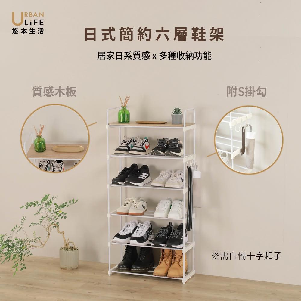 URBAN LiFE 悠本生活日式簡約六層鞋架附木板*1 寬55公分 (台灣製/玄關架.收納層架.鞋櫃.開放式鞋架.多功能置物架)