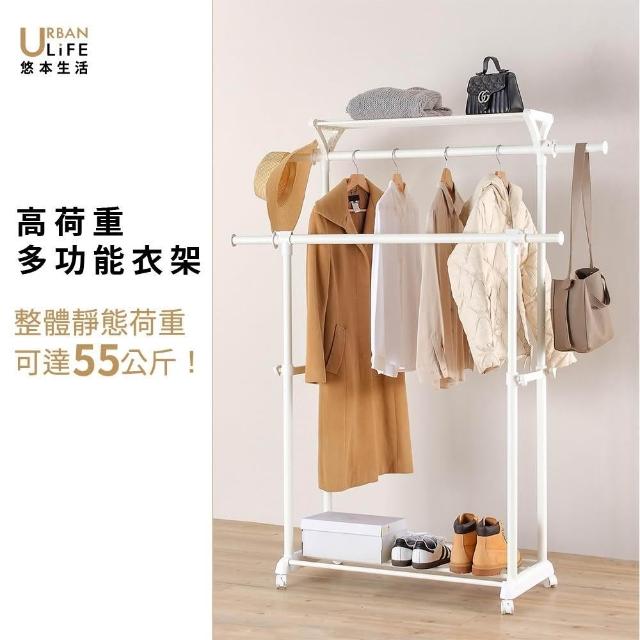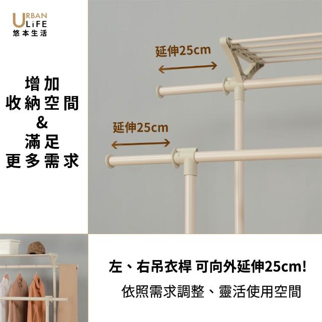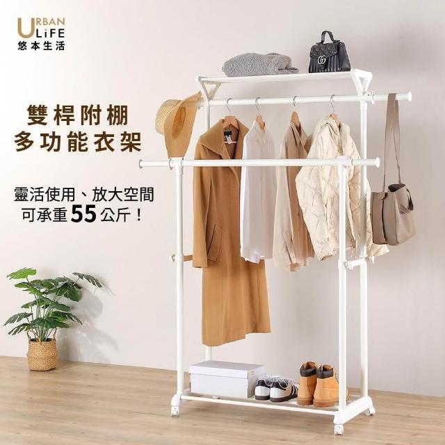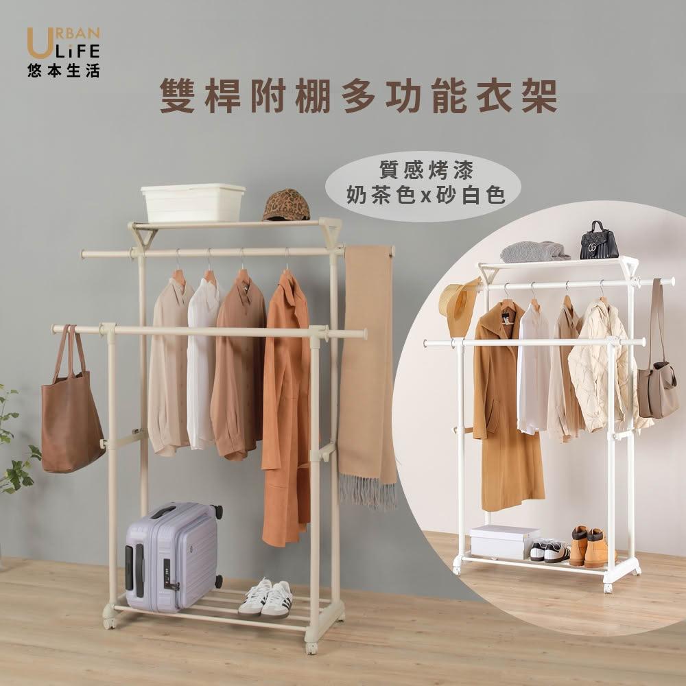 URBAN LiFE 悠本生活雙桿附棚多功能衣架 (吊衣架 掛衣架 曬衣架 晾衣架 收納升降衣架 伸縮衣架 衣帽架 置物架 收納盒 )