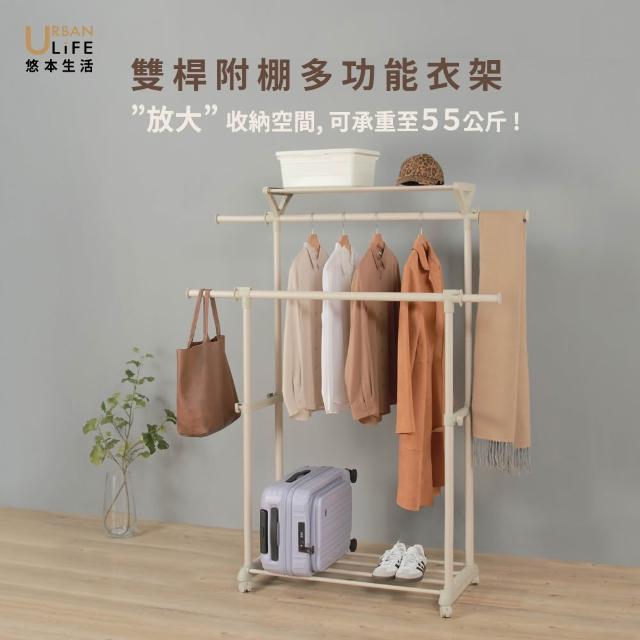 URBAN LiFE 悠本生活雙桿附棚多功能衣架 (吊衣架 掛衣架 曬衣架 晾衣架 收納升降衣架 伸縮衣架 衣帽架 置物架 收納盒 )