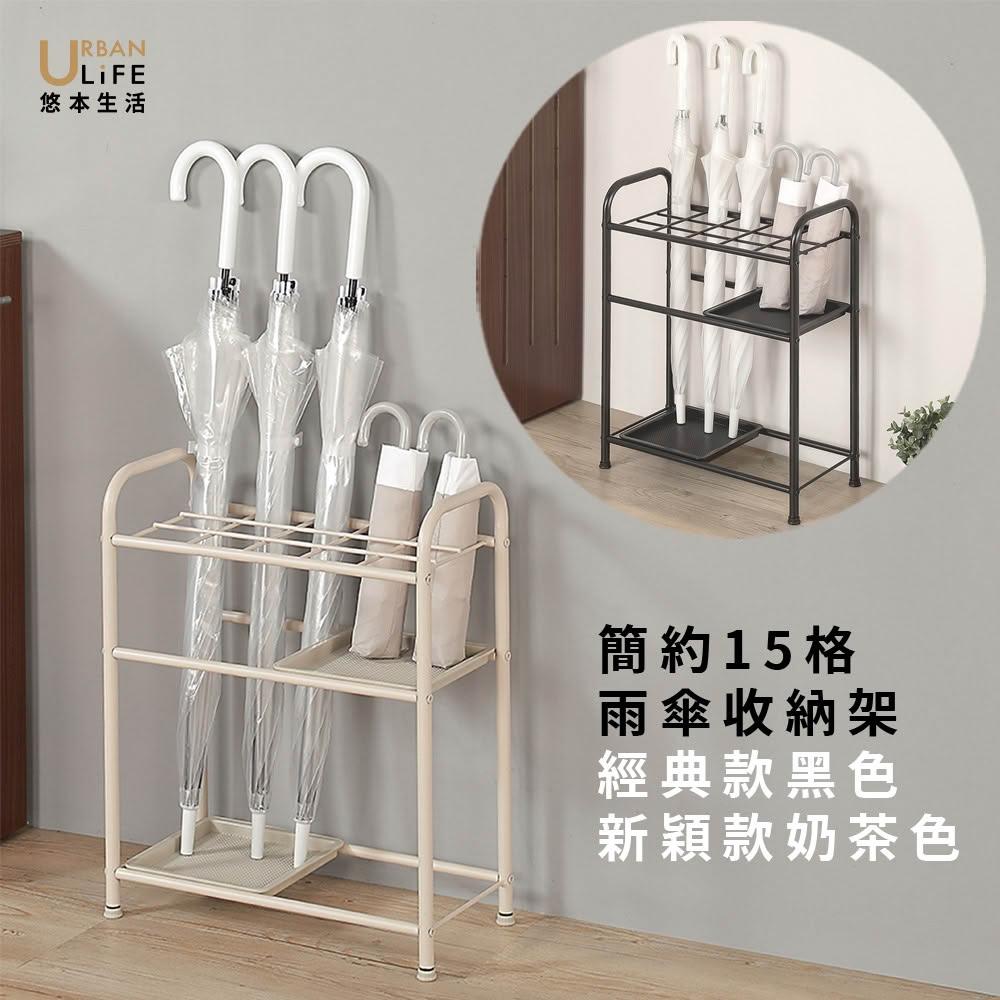URBAN LiFE 悠本生活 簡約大容量15格雨傘架(商用家用營業用長短雨傘收納架瀝水架置物架落地架放傘架長方型收納傘架台灣製)
