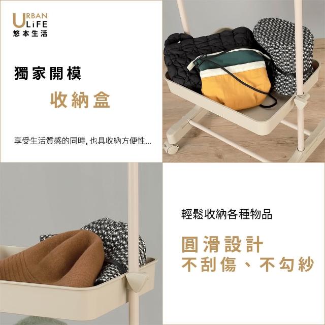 URBAN LiFE 悠本生活窄美學左右伸縮單衣架附1個收納盒附煞車(曬衣架吊掛衣架衣帽架收納衣架收納籃盒置物架衣櫥)