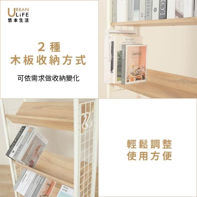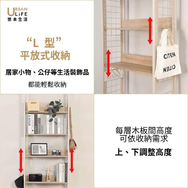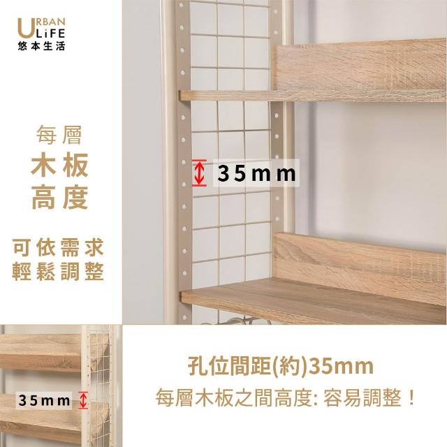 URBAN LiFE 悠本生活日式頂天立地多功能木板置物架附S掛勾(玄關架/層架/收納架/書架/櫥櫃) 砂白色 奶茶色