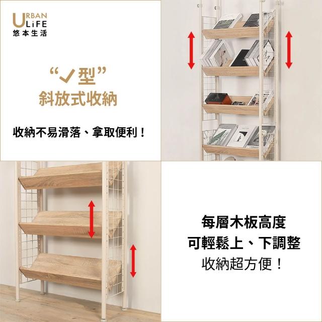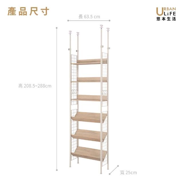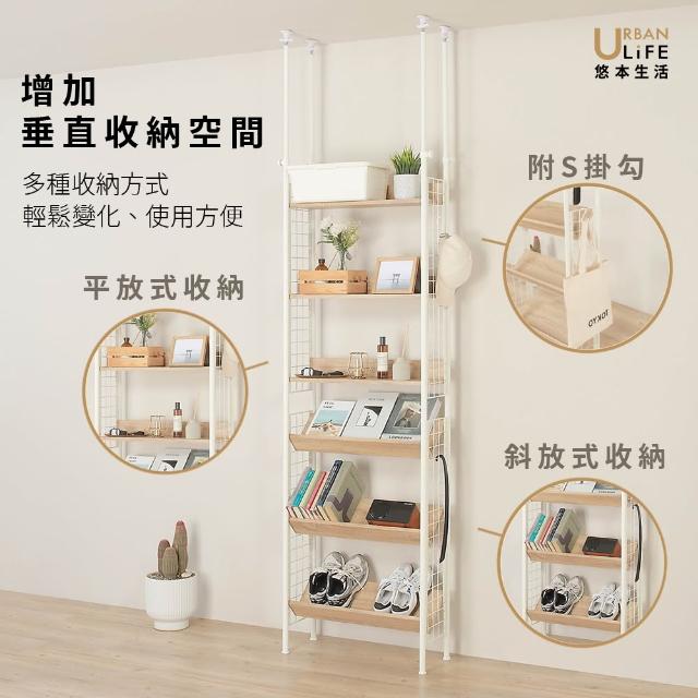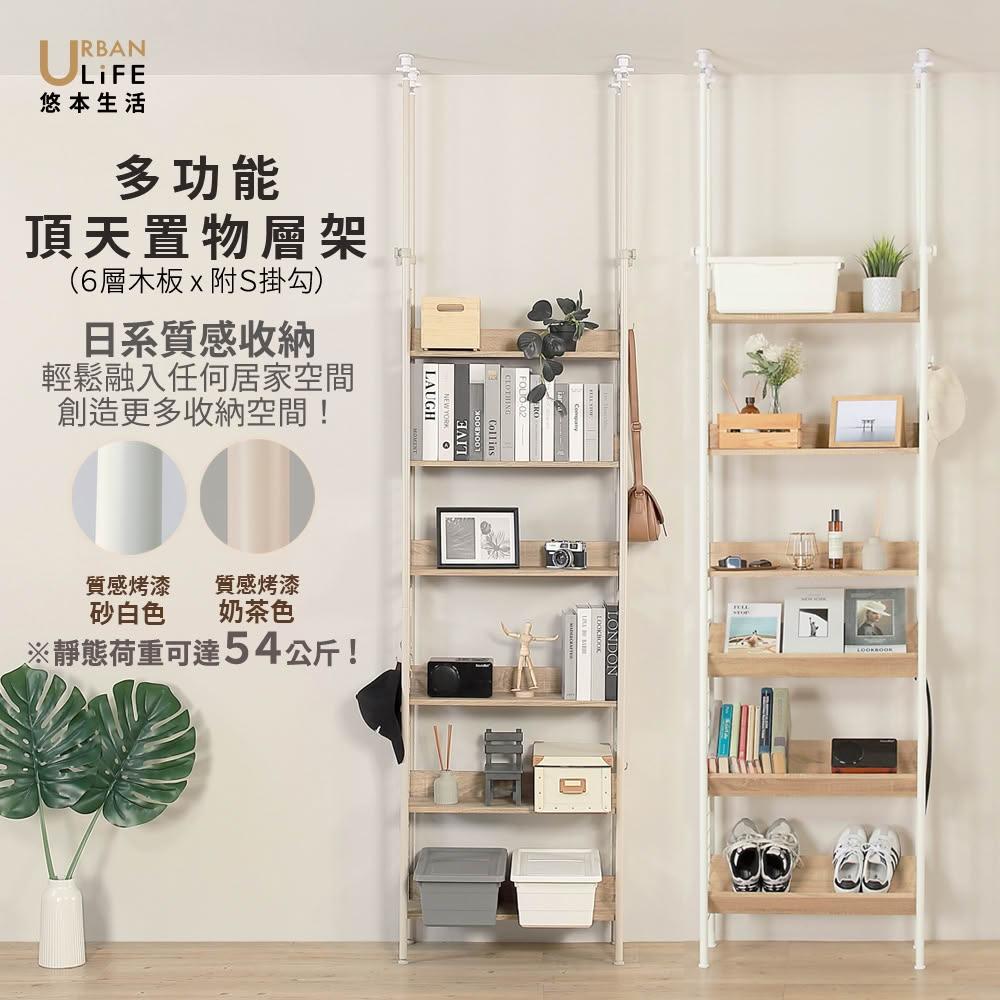URBAN LiFE 悠本生活日式頂天立地多功能木板置物架附S掛勾(玄關架/層架/收納架/書架/櫥櫃) 砂白色 奶茶色