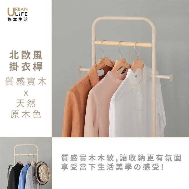 URBAN LiFE 悠本生活北歐風x窄美學の掛衣架附實木衣桿/2層木板(商用辦公居家收納置物架/晾曬吊衣架/轉角落衣帽架/MIT台灣製造)