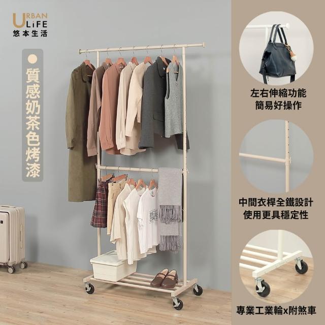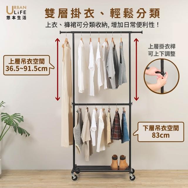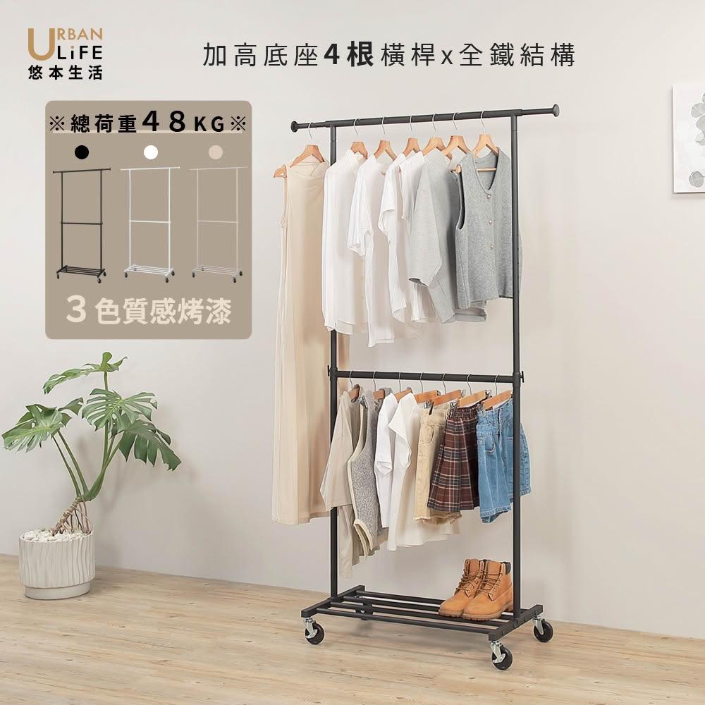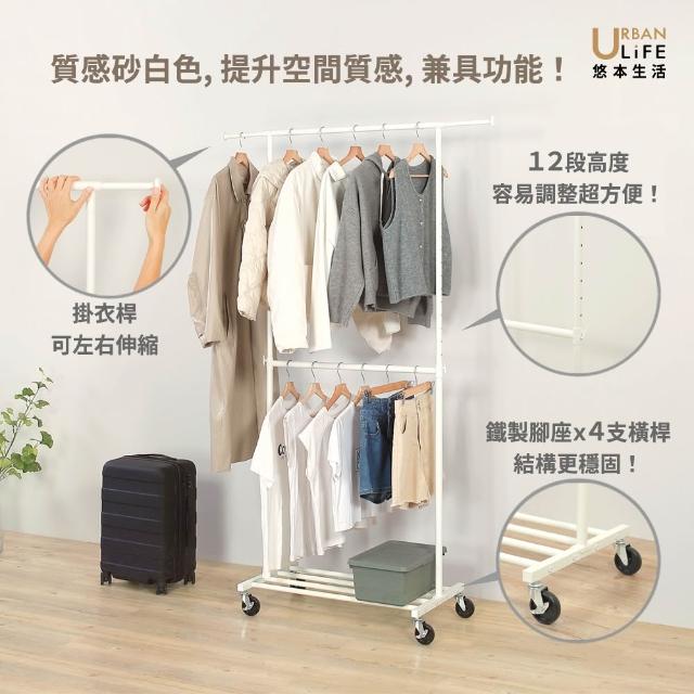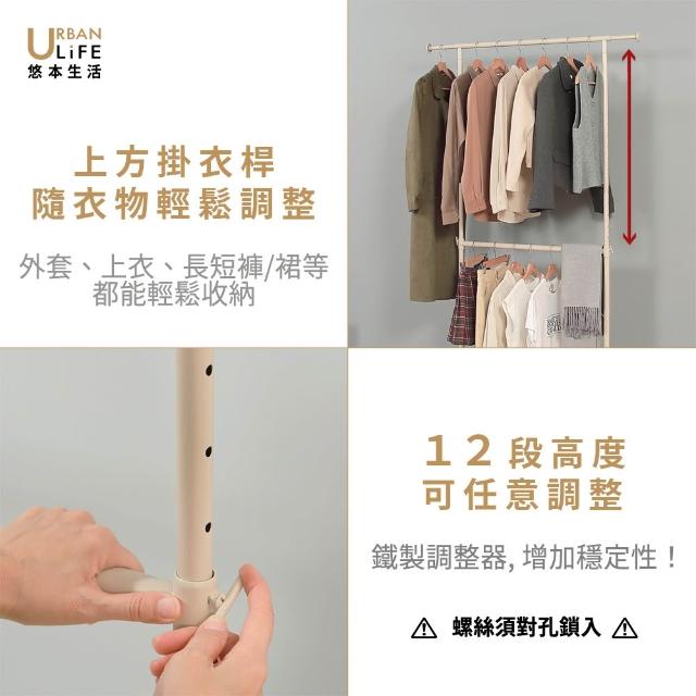 URBAN LiFE 悠本生活高荷重左右伸縮雙桿單衣架( 加高加深12段高度可調整晾掛吊衣架衣帽架重型衣架衣物收納架室內外晾曬)