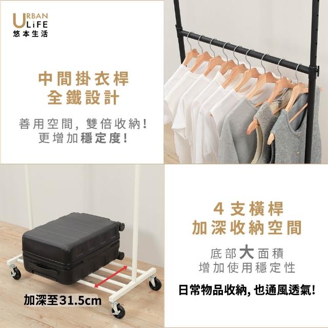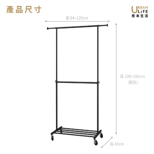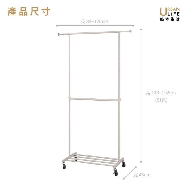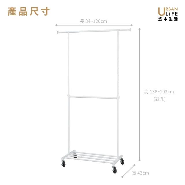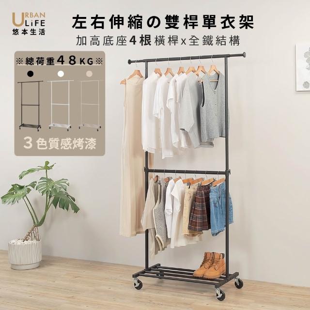 URBAN LiFE 悠本生活高荷重左右伸縮雙桿單衣架( 加高加深12段高度可調整晾掛吊衣架衣帽架重型衣架衣物收納架室內外晾曬)