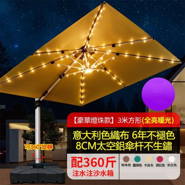 戶外遮陽傘 太陽能款 全亮燈珠3米方形+360斤帶輪水箱(羅馬傘 庭院傘 太陽傘 遮陽傘 海灘傘 休閒傘 擺攤傘)