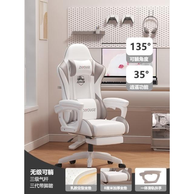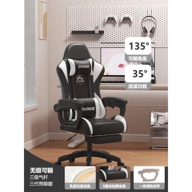 電競椅 可躺辦公椅 電腦椅旋轉座椅網吧遊戲椅子 辦公椅 休閒椅 升降椅 遊戲椅 躺椅 擱腳+超纖皮+乳膠填充 四色可選