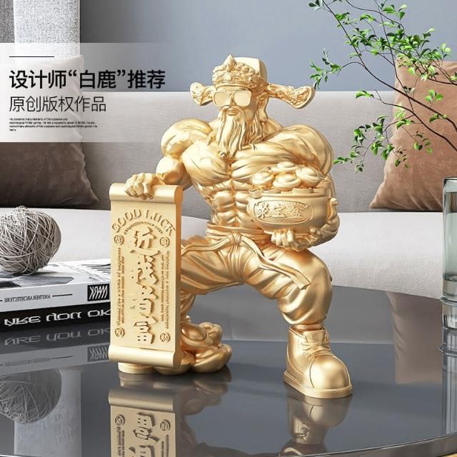肌肉財神爺喜慶擺件 創意財神爺擺件 店鋪前台吧檯聚財裝飾品 客廳家用辦公室擺件 桌面裝飾 禮物 居家裝飾 交換禮物 風水擺件 聚寶盆