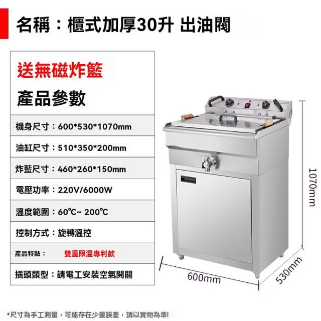 不鏽鋼電炸爐油炸機 110V/220v油炸爐 單缸雙缸商用家用油炸鍋 油條機炸串機 立式油炸鍋 - 10L/30L多規格選擇