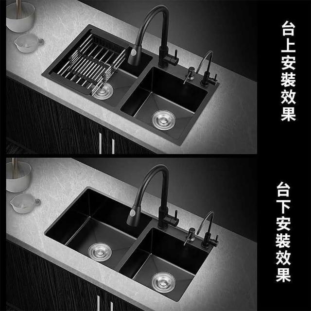 廚房水槽雙槽洗菜盆 手工納米加厚304不銹鋼家用洗碗池 家用加厚洗菜池水池 洗手台 洗碗槽 洗手盆 流理台