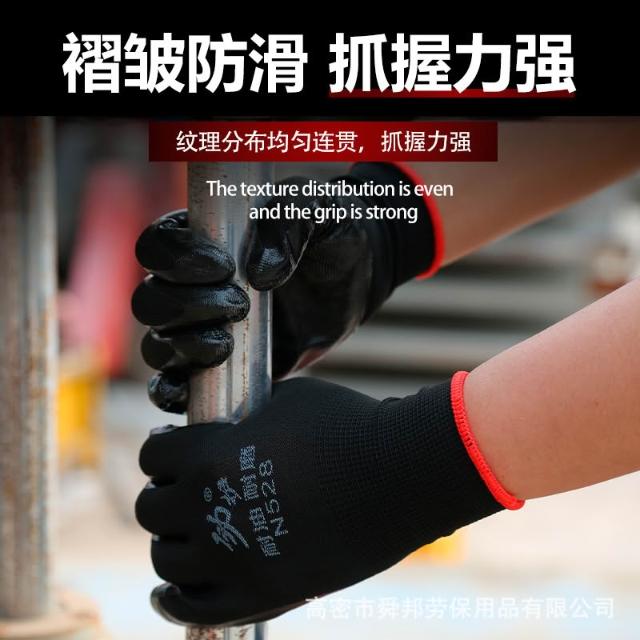 光面丁腈膠勞保手套 輕巧耐磨防滑防油耐酸堿勞保手套12雙