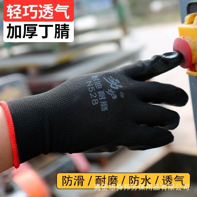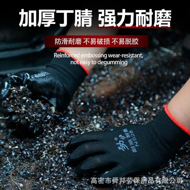 光面丁腈膠勞保手套 輕巧耐磨防滑防油耐酸堿勞保手套12雙