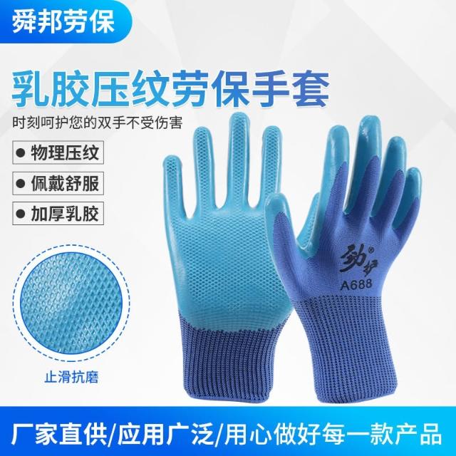 乳膠壓紋加強耐磨勞保手套 防油防滑防護手套 乳膠壓紋手套