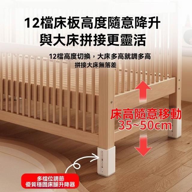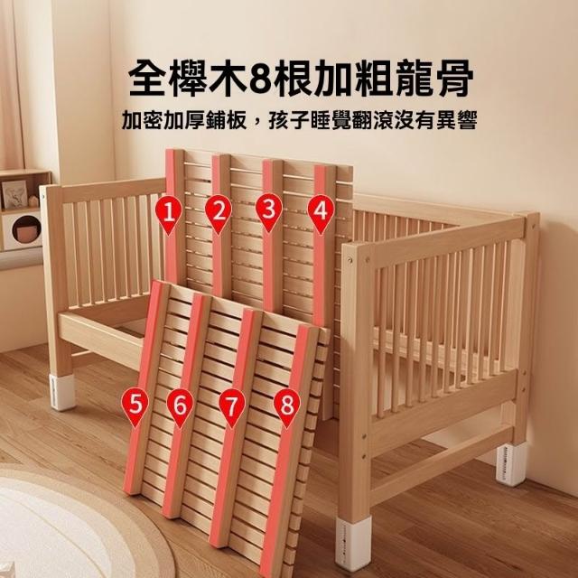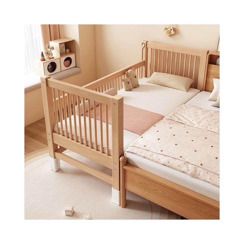榉木兒童拼接床實木兒童床可升降護欄拼接大床小孩床邊床嬰兒床