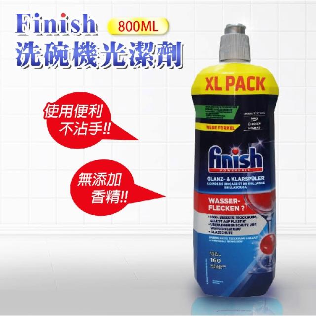 finish 亮碟Finish 光潔劑 800ml 最新款無香精環保型 強化玻璃保護 洗碗機專用(平輸品)-12罐