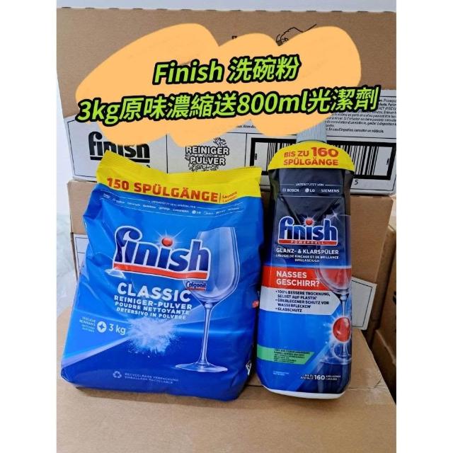 finish 亮碟Finish 洗碗機濃縮洗碗粉 3公斤原味洗碗粉 送800ml 光潔劑