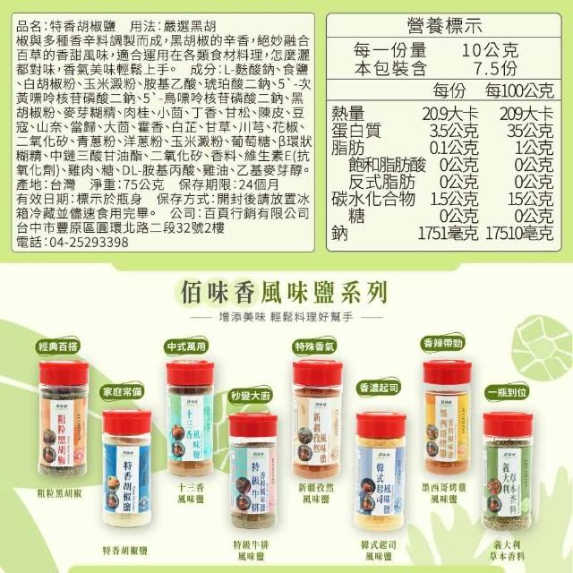 佰味香特香胡椒鹽-超值增量75g調味粉/胡椒粉/烤肉/野炊/萬用/商用/搖搖粉/調味粉/登山/露營(白胡椒鹽)