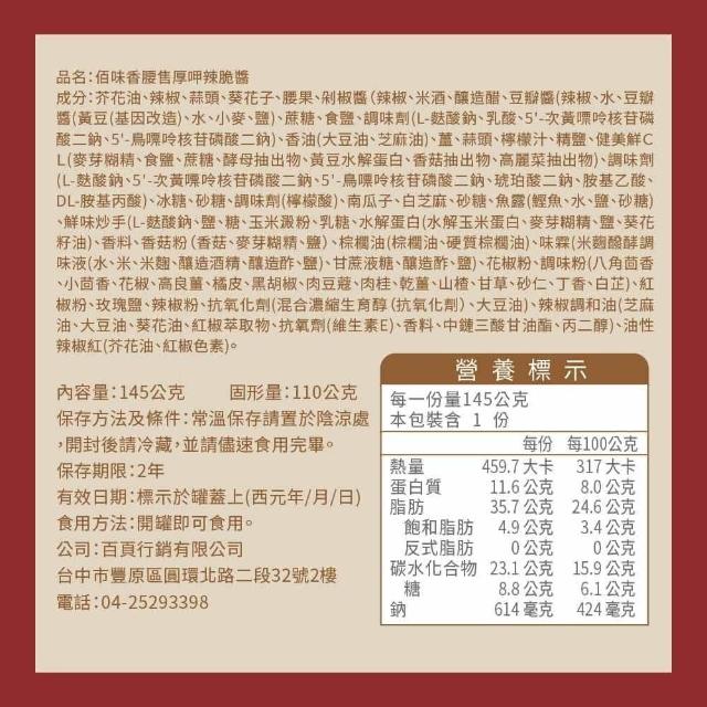 佰味香腰售厚呷辣脆醬-單罐伍仁/五仁/堅果/腰果/南瓜子/芝麻/辣醬/辣椒醬/辣醬(辣脆醬)
