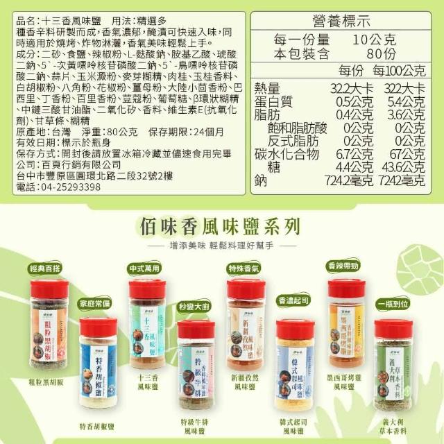 佰味香十三香風味鹽-超值增量80公克去腥/調味/調味粉/胡椒粉/烤肉/野炊/露營/商用/醃漬(十三香)