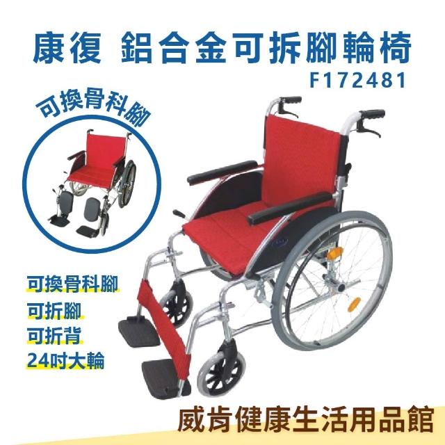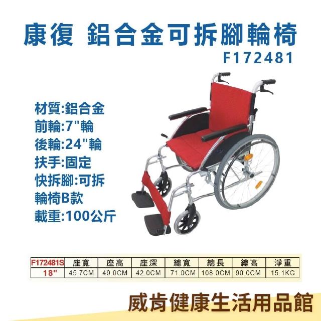 康復鋁合金背折輪椅F17-2481S可拆腳 骨科輪椅 B款補助