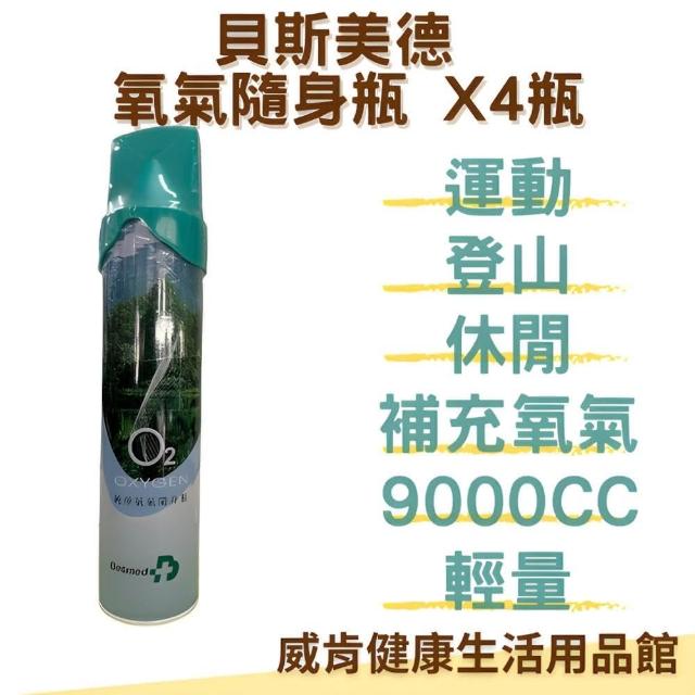 Besmed 貝斯美德氧氣隨身瓶4入/組 O2氧氣瓶登山、運動 氧氣瓶 9000CC 台灣製