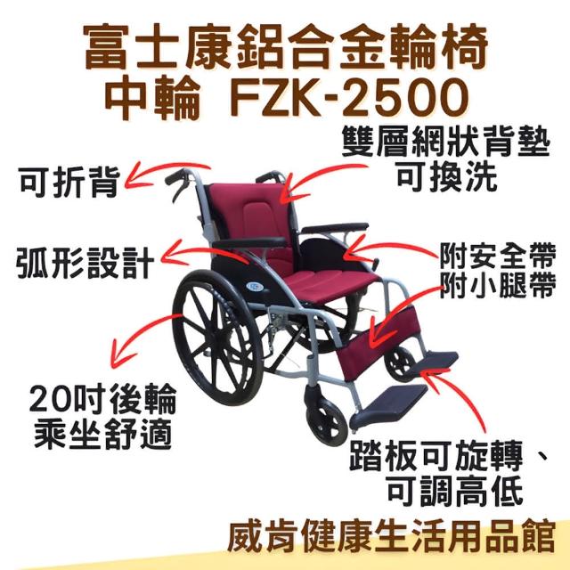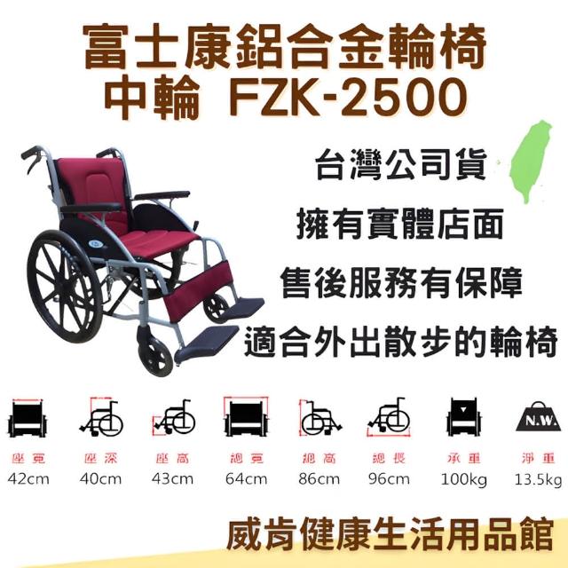 富士康輕量化輪椅 FZK-2500 中輪 可折背收合(輕量手動輪椅 弧形設計 方便攜帶)