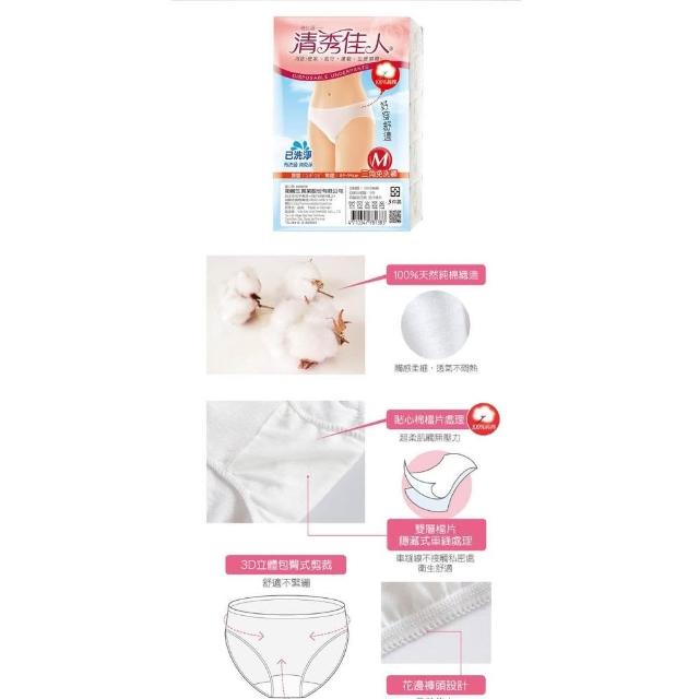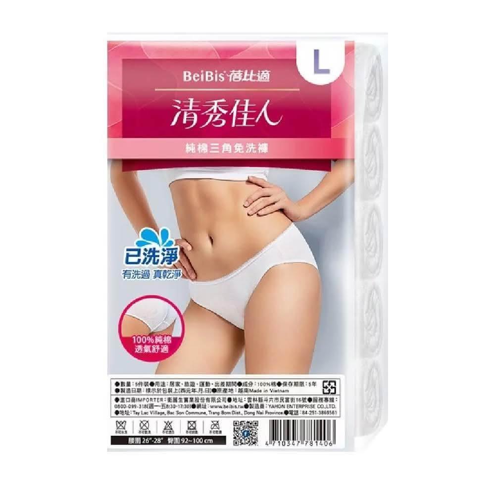 蓓比適清秀佳人 女性三角免洗內褲 一包5件入100%純棉透氣舒適 純棉免洗內褲 M-XL 5件入