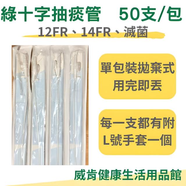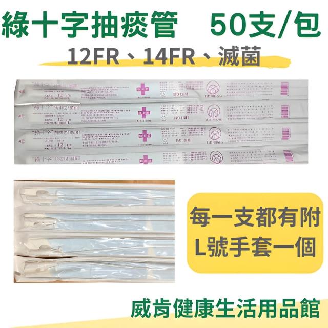 綠十字滅菌抽痰管 抽痰包 醫療級滅菌 50支 12FR 14FR醫院規格抽痰用 滅菌抽痰管 附手套 抽痰