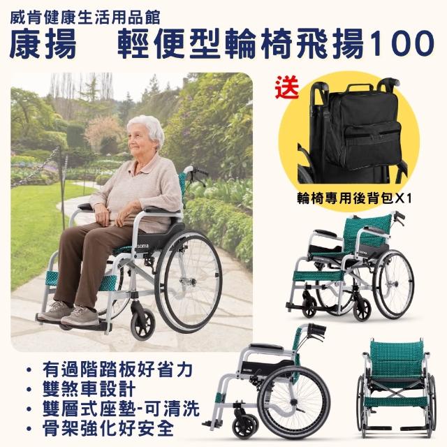 康揚飛揚100 SM-100.5 鋁合金手動輪椅 輕量設計 方叉穩定結構 長照補助B款 送輪椅後背包