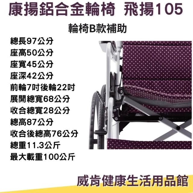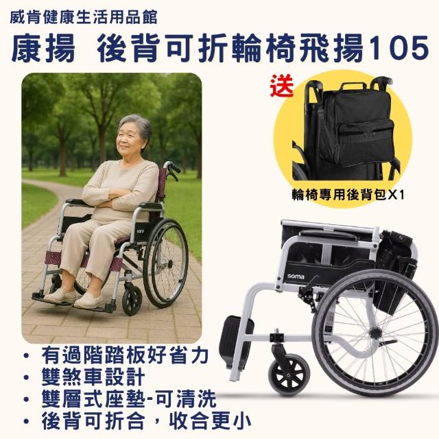 康揚飛揚105 鋁合金輪椅 可折背 輪椅B款 SM-100.5 手動輪椅 外出輪椅 醫療輪椅 送專用後背包 康揚輪椅
