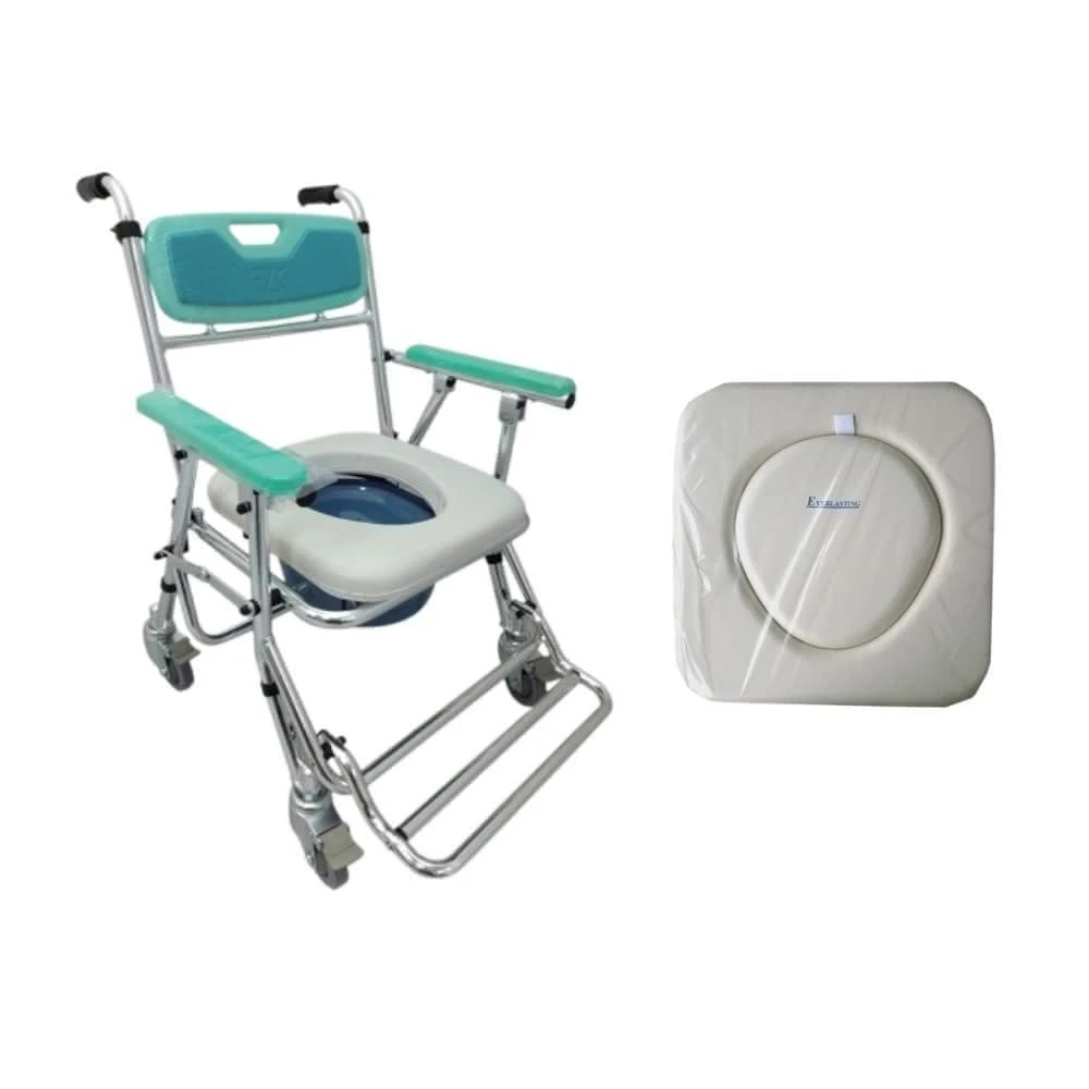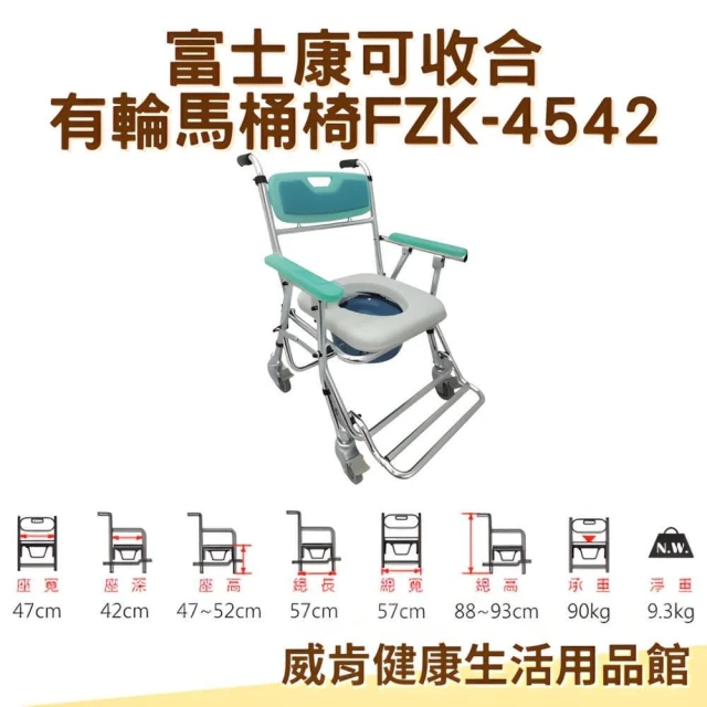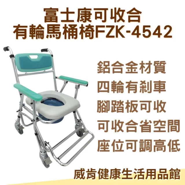 富士康摺疊馬桶椅FZK-4542 子母坐墊 (便器椅 洗澡椅 附輪可收合)