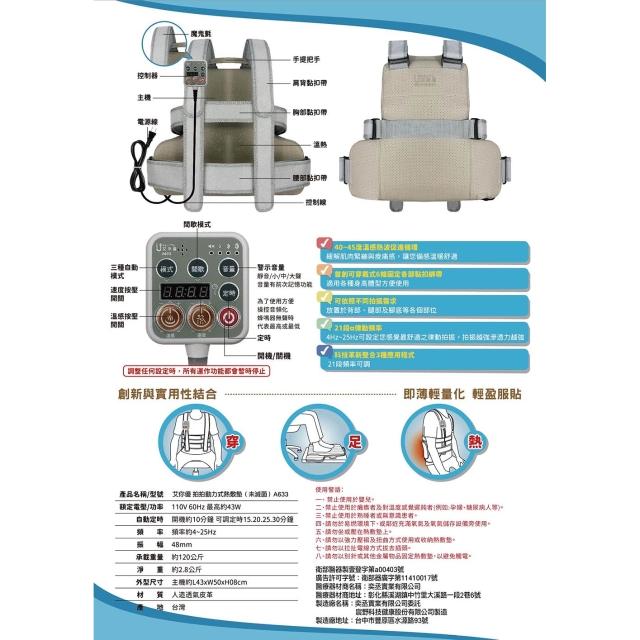 艾你優 拍拍毯 A-633拍痰背心 按摩靠墊 拍痰機器 拍背按摩墊 自動拍痰器