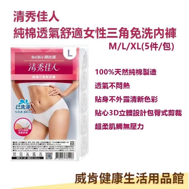 蓓比適清秀佳人 女性三角免洗內褲 一包5件入 X5包入 (100%純棉 透氣舒適 純棉免洗內褲 M-XL )