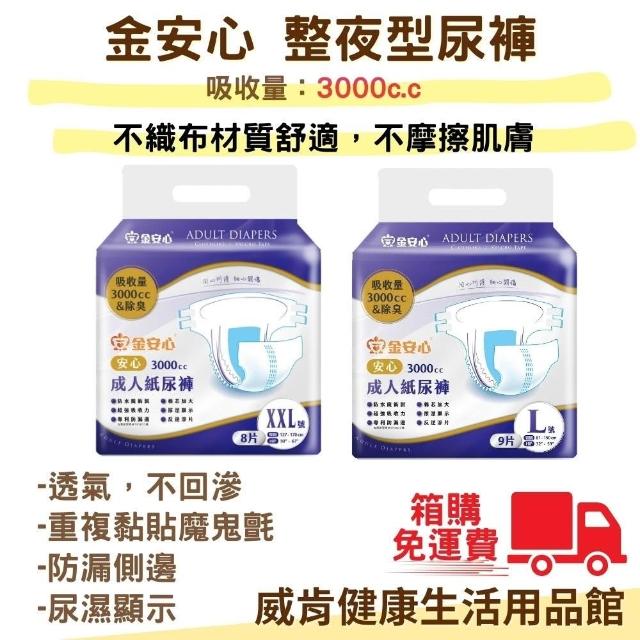 金安心成人紙尿褲 夜用尿褲 整夜型 3000CC 黏貼式紙尿褲 (黏貼型紙尿褲 箱購 M號 老人尿褲 成人尿布)