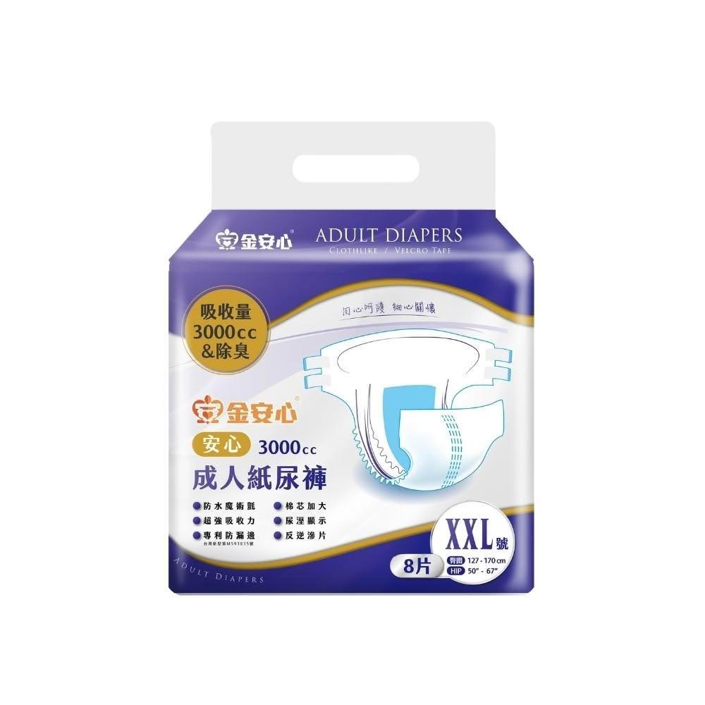 金安心成人紙尿褲 夜用尿褲 整夜型 3000CC 黏貼式紙尿褲 (黏貼型紙尿褲 箱購 M號 老人尿褲 成人尿布)