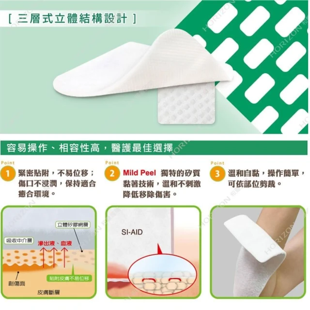 獨特立體矽膠網層,不易沾黏傷口