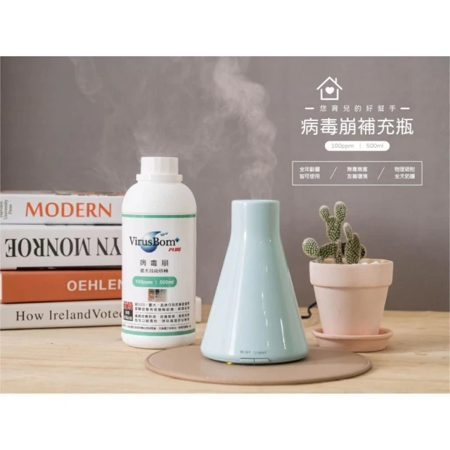 VirusBom 台大病毒崩病毒崩補充瓶500ml*1+隨身瓶100ml*1 組合 (100ppm )