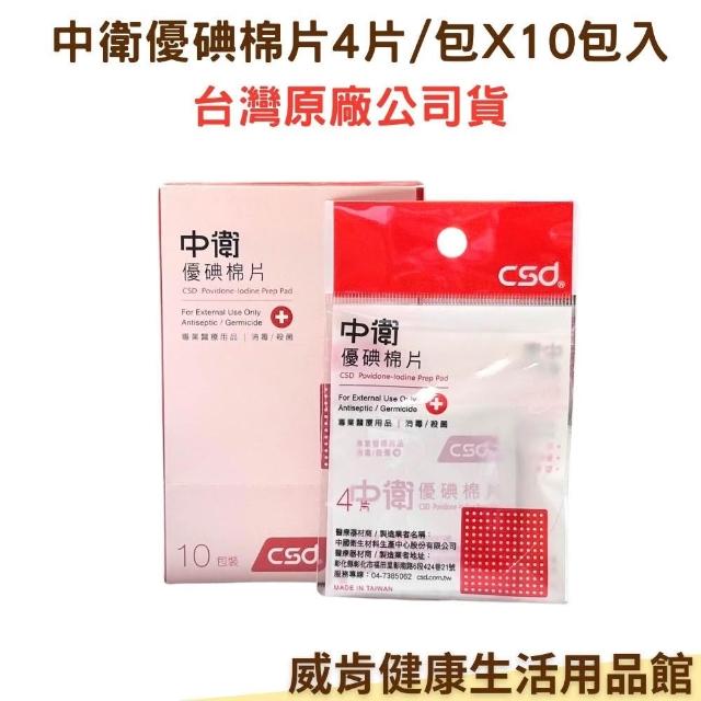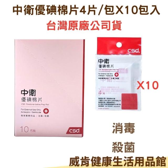 中 衛優碘棉片4片入x10包/盒裝 隨身包 優碘棉片 台灣公司貨 消毒 傷口照護