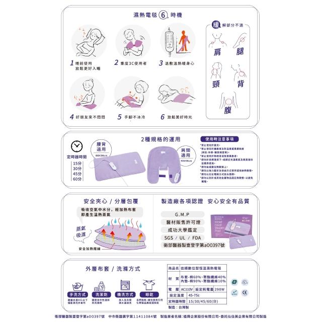 佳順肩頸熱敷墊 肩頸用濕熱電毯 數位恆溫 ㄇ型設計 (釋放遠紅外線 珊瑚砂 台灣製 定時)