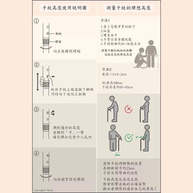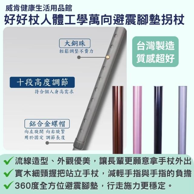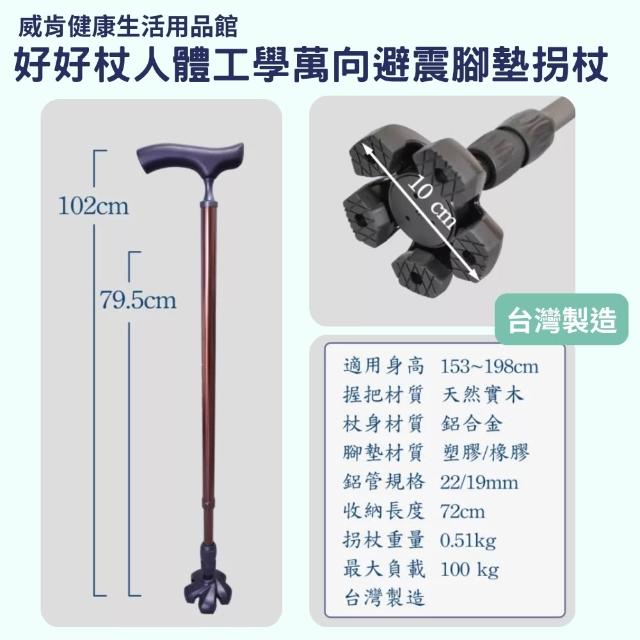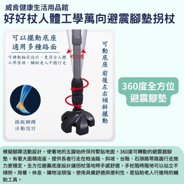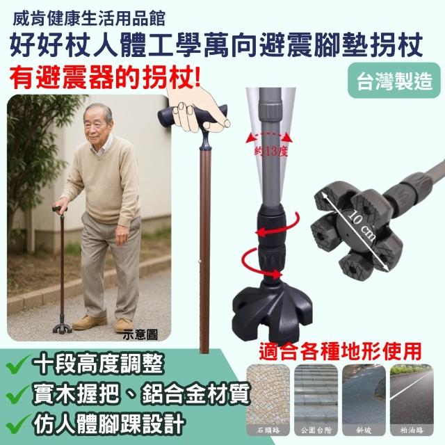 好 好 杖 萬向避震拐杖 老人手杖 四腳拐杖 細頸實木握把 人體工學設計