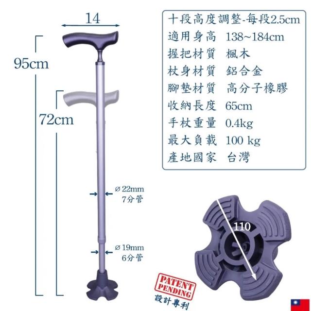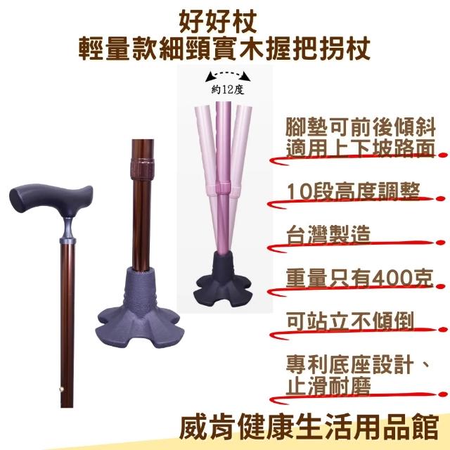 台灣製拐杖 站立手杖 輕量款細頸實木握把 艾菲爾橡膠底座自立拐杖