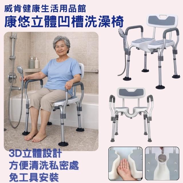 康悠鋁合金洗澡椅 送洗髮帽 3D坐板 老人洗澡椅 凹槽洗澡椅 清洗方便 免工具安裝 沐浴椅
