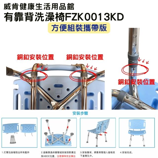 富士康有靠背洗澡椅 沐浴椅 防滑椅 有靠背 簡易拆裝 方便收納 輕便款 FZK0013KD