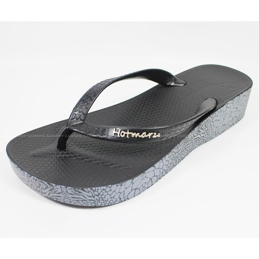 Hotmarzz 黑瑪女生厚底高跟人字拖 運動休閑涼拖鞋 夾腳拖 防滑印花沙灘拖 HM7053