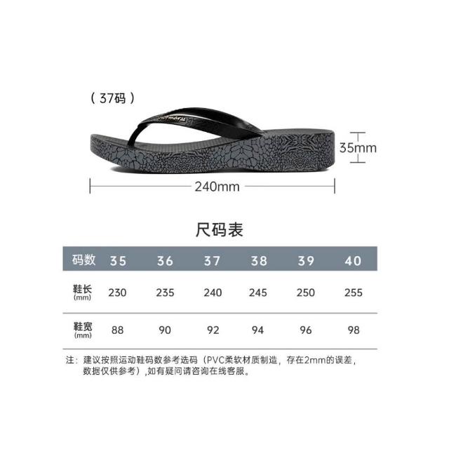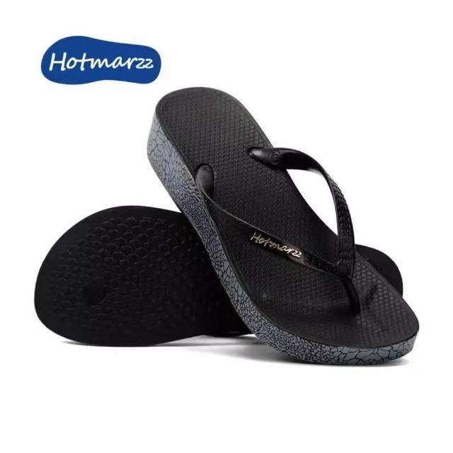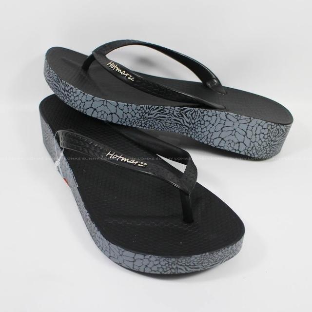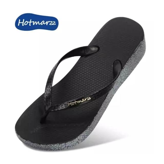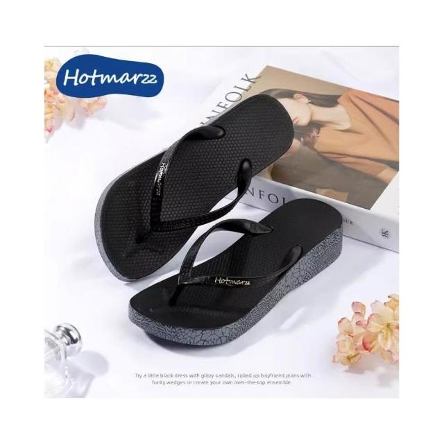 Hotmarzz 黑瑪女生厚底高跟人字拖 運動休閑涼拖鞋 夾腳拖 防滑印花沙灘拖 HM7053